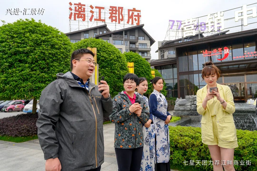 七星天團(tuán)來到興進(jìn)·匯景坊,為這里的美景驚嘆,七星天團(tuán)新晉“帶貨達(dá)人”副區(qū)長胡凱先生、副區(qū)長王海燕女士還向大家特別推薦了興進(jìn)·匯景坊商業(yè)街: