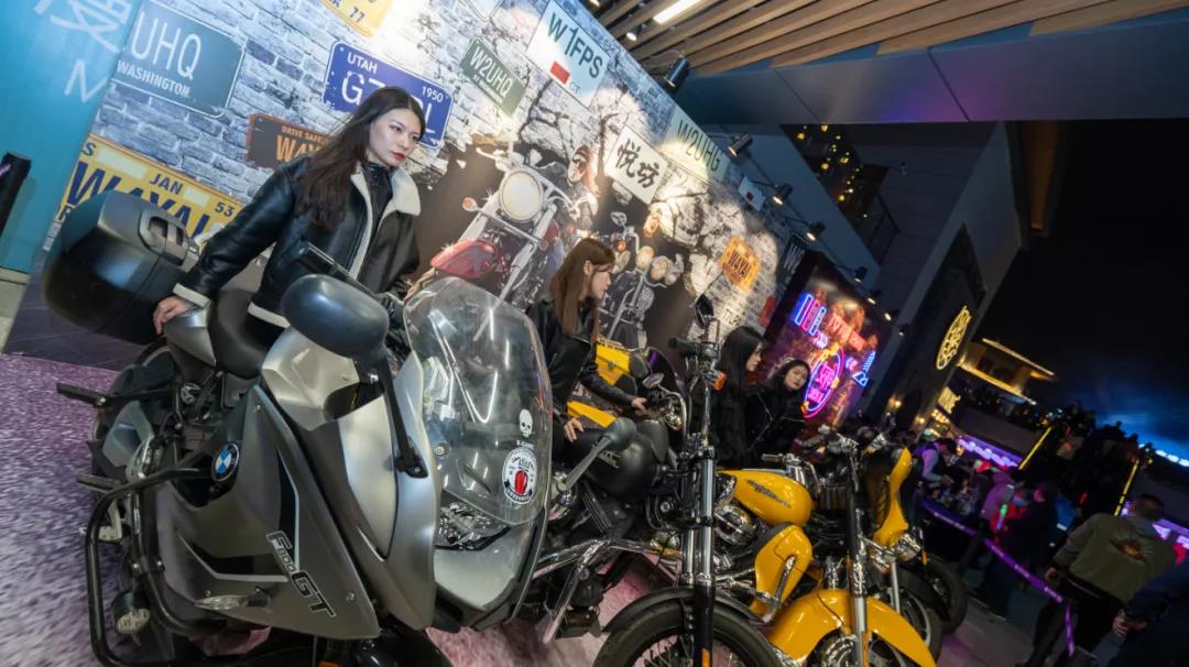 潮悅機車展和女神調(diào)酒區(qū),炫酷機車和花式調(diào)酒,吸引了眾多人的駐足觀看。
