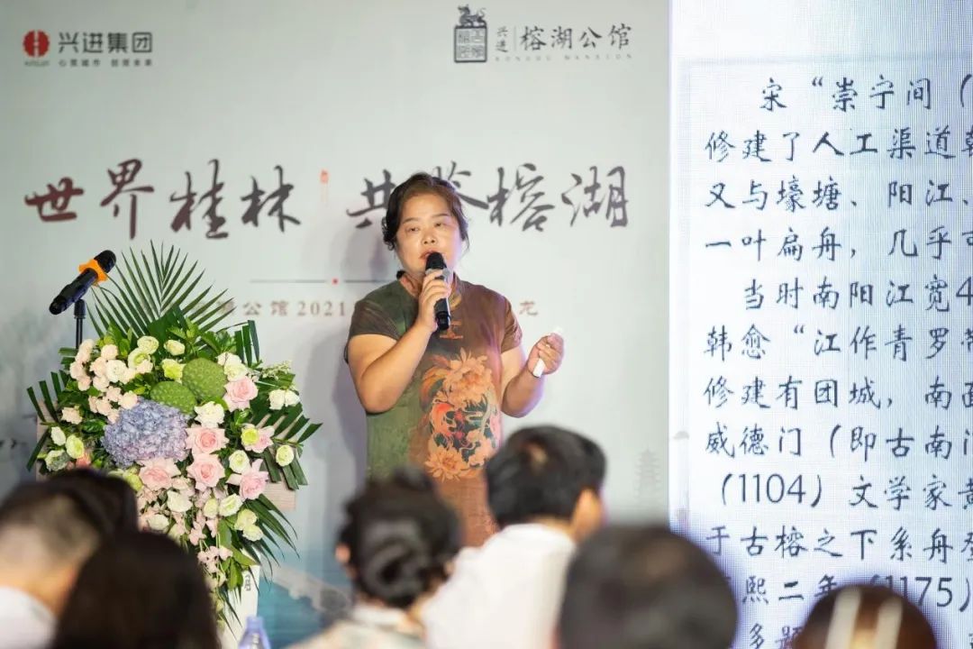 活動還特別邀請到桂林抗戰(zhàn)文化研究會會長、桂林歷史文化研究院專家委員會委員凌世君女士?;顒蝇F(xiàn)場,凌老師向來賓們娓娓道來《榕湖的前世今生》,將榕湖的歷史脈絡(luò)、人文景致生動描述,并且將其長期對于榕湖的研究及學(xué)術(shù)文章結(jié)合進行了分享,讓所有來賓身臨其境體驗了一次"千年榕湖"穿越之旅。