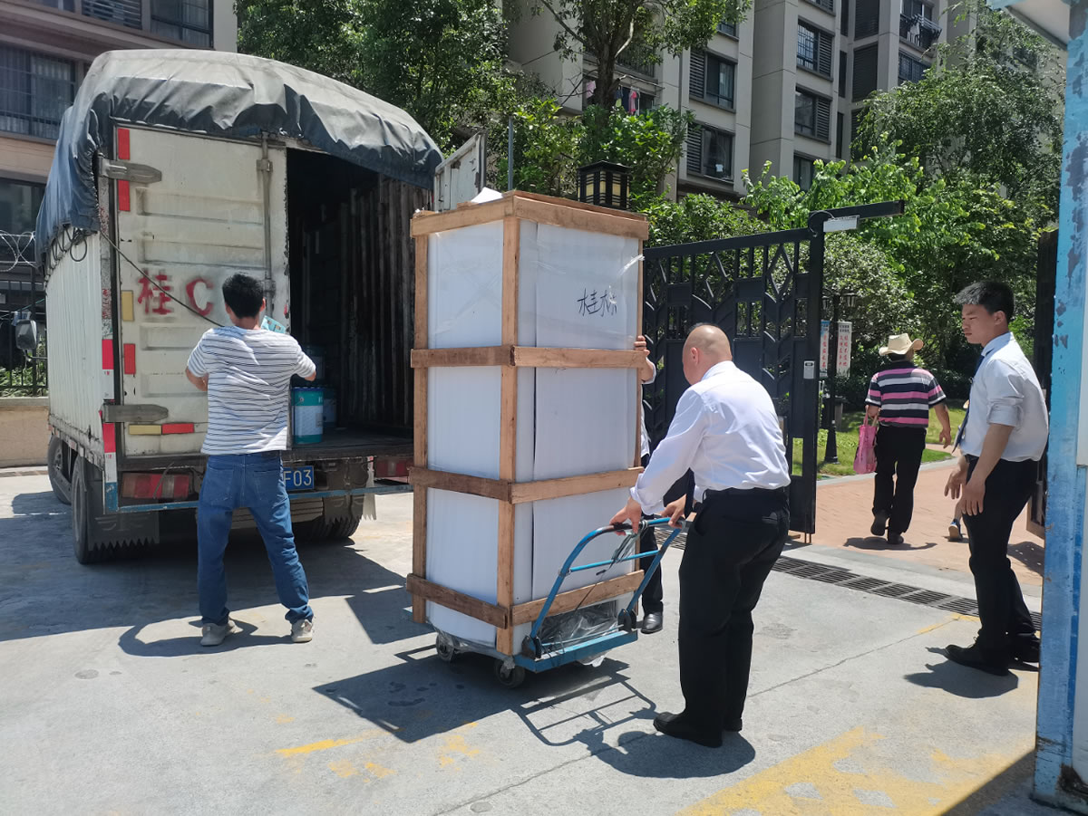 興進·上譽物業(yè)秩序班長穆華坤和隊員張學、秦串林在正午炙熱的太陽下,幫助業(yè)主搬運重達60公斤的冰箱至頂層閣樓……