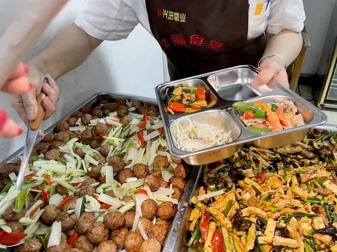 自從有了業(yè)主食堂,她的小小心愿得以實(shí)現(xiàn),"我們的食堂菜品不僅種類豐富,而且足夠營(yíng)養(yǎng)健康,大家吃得很放心。在吃飯的時(shí)候還能與鄰居聊天,感謝興進(jìn)物業(yè)為我們營(yíng)造這樣的溫馨食堂!"