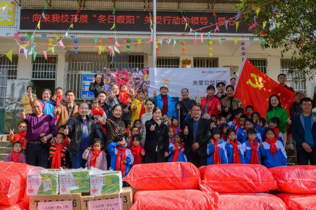 12月22日,興進集團"白嶺小學冬日暖陽公益慰問活動"再次暖心啟程。 上午7點,桂林市市委組織部副部長、老干部局局長、市關(guān)工委副主任黃小桂女士,桂林市關(guān)工委副主任王榕女士,桂林市關(guān)工委辦公室主任宦福成,全州縣委組織部副部長、老干局局長、縣關(guān)工委副主任韋同波先生,全州縣關(guān)工委辦公室主任劉鑫,興進集團副總裁羅捷女士、五老成員愛心人士宋慧萍、周佳、唐軍紅、黃潔瓊以及興進集團愛心志愿者、業(yè)主愛心志愿者一行30余人組成的愛心公益團隊,從興進集團總部出發(fā),歷經(jīng)四個多小時的車程后,于中午抵達全州縣東山瑤族鄉(xiāng)白嶺小學。