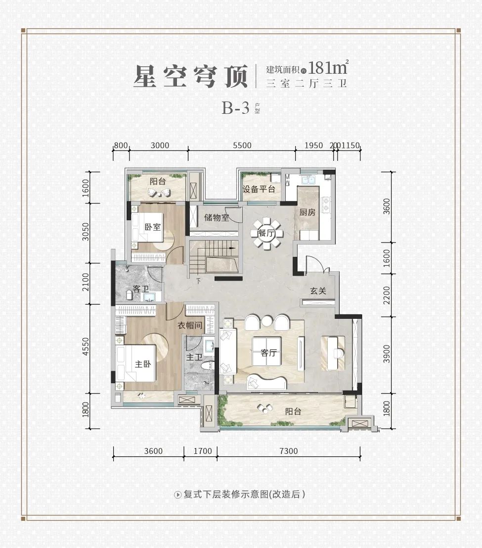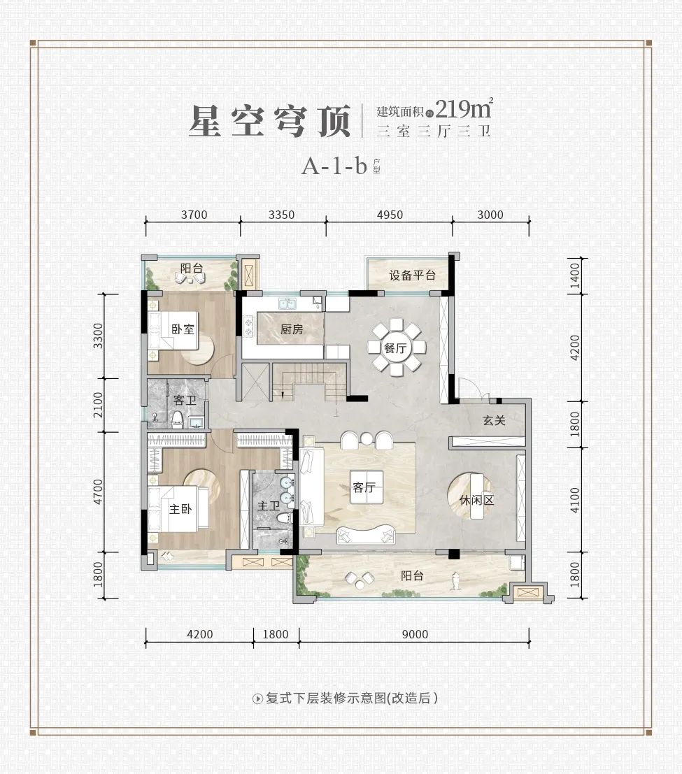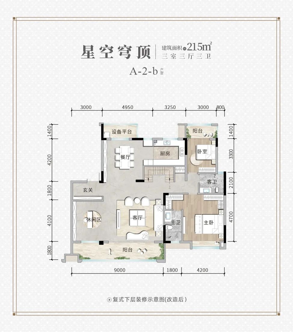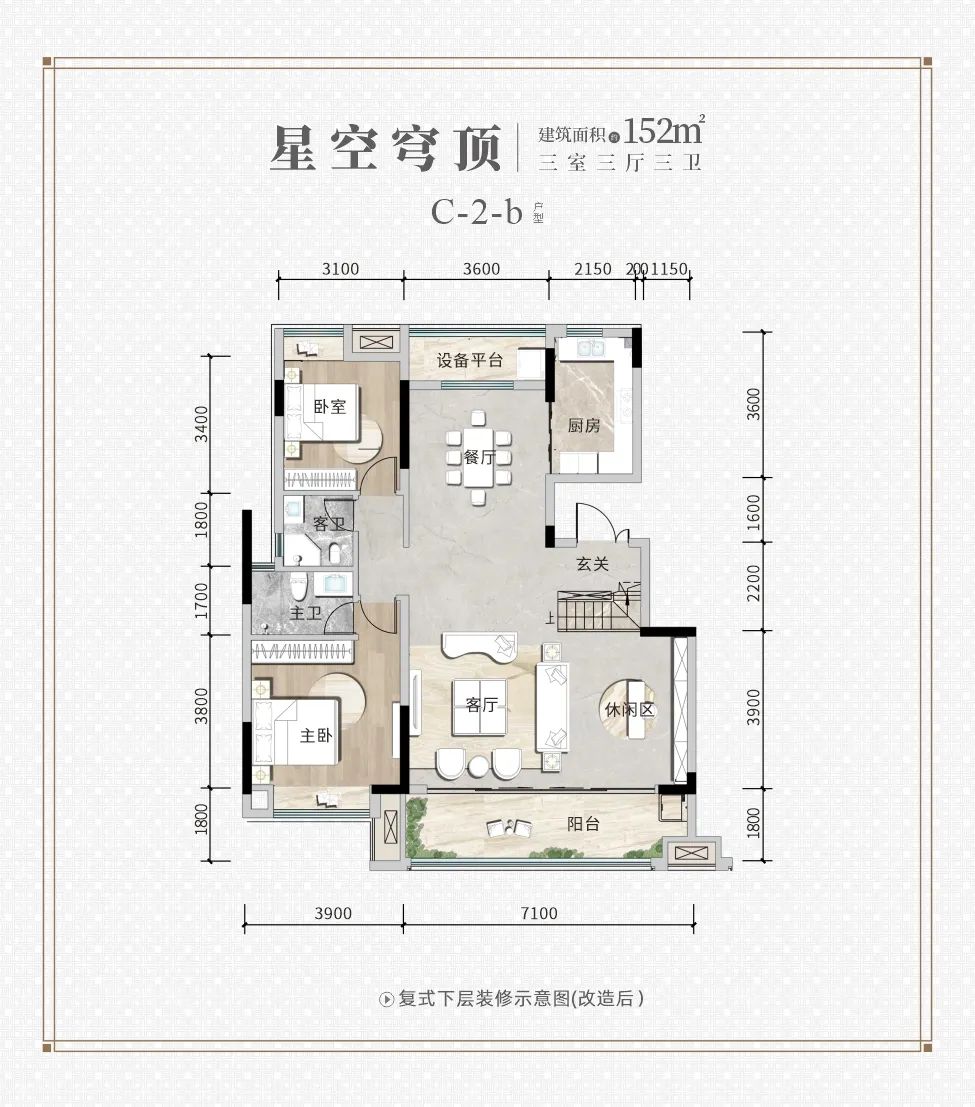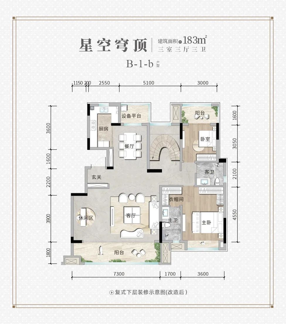 【星空穹頂】戶型帶給我們的,是空間層次與功能表現(xiàn)的迭代,也是生活全新享受的開始。讓生活與期待共生,將調(diào)動情緒與情感滿足的細節(jié)點綴其中,鏈接起心中最本真的生活樂趣。