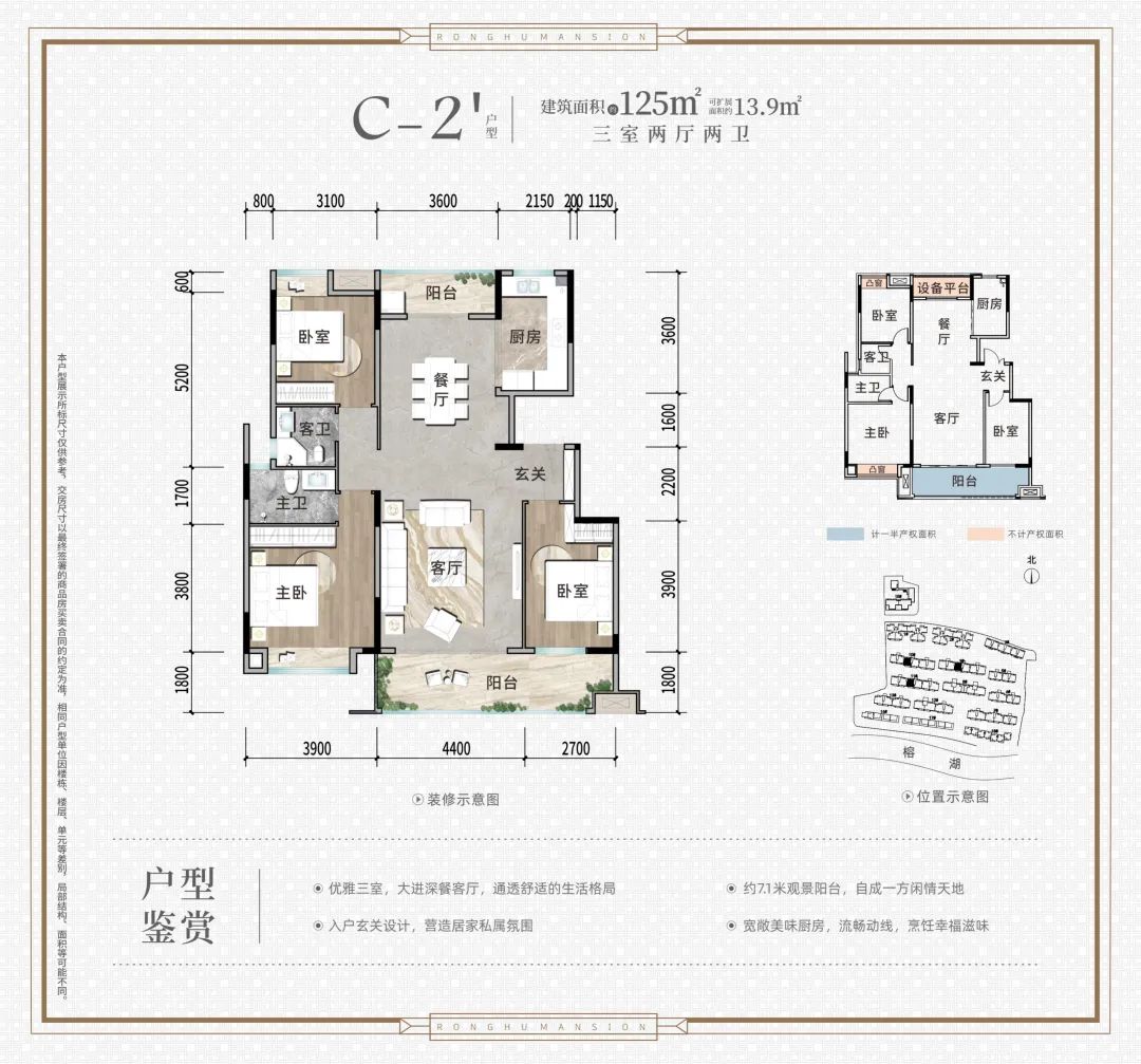 約5.5-9米闊景陽臺(tái),大戶型三陽臺(tái)設(shè)計(jì),南北通透,讓榕湖美景與美學(xué)園林盡收眼底