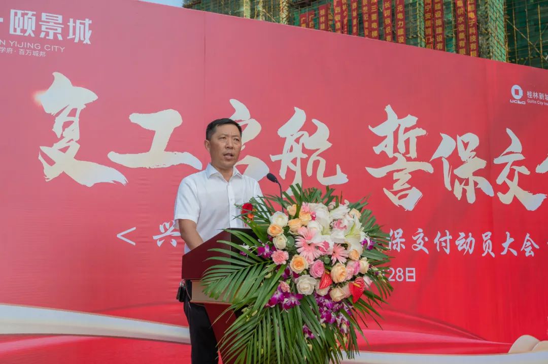 興進·頤景城是興進集團與桂林新城投資集團合作開發(fā)項目,興進集團是廣西本土房企前三強,25年匠鑄37城,擁有超過10萬名業(yè)主,一直秉承匠心打造高品質(zhì)人居;桂林新城投資集團作為國企,始終堅守國企責任擔當,把推動城市建設發(fā)展作為己任,努力打造優(yōu)質(zhì)工程和精品工程。所以,興進·頤景城的復工牽動著不少領(lǐng)導的心。