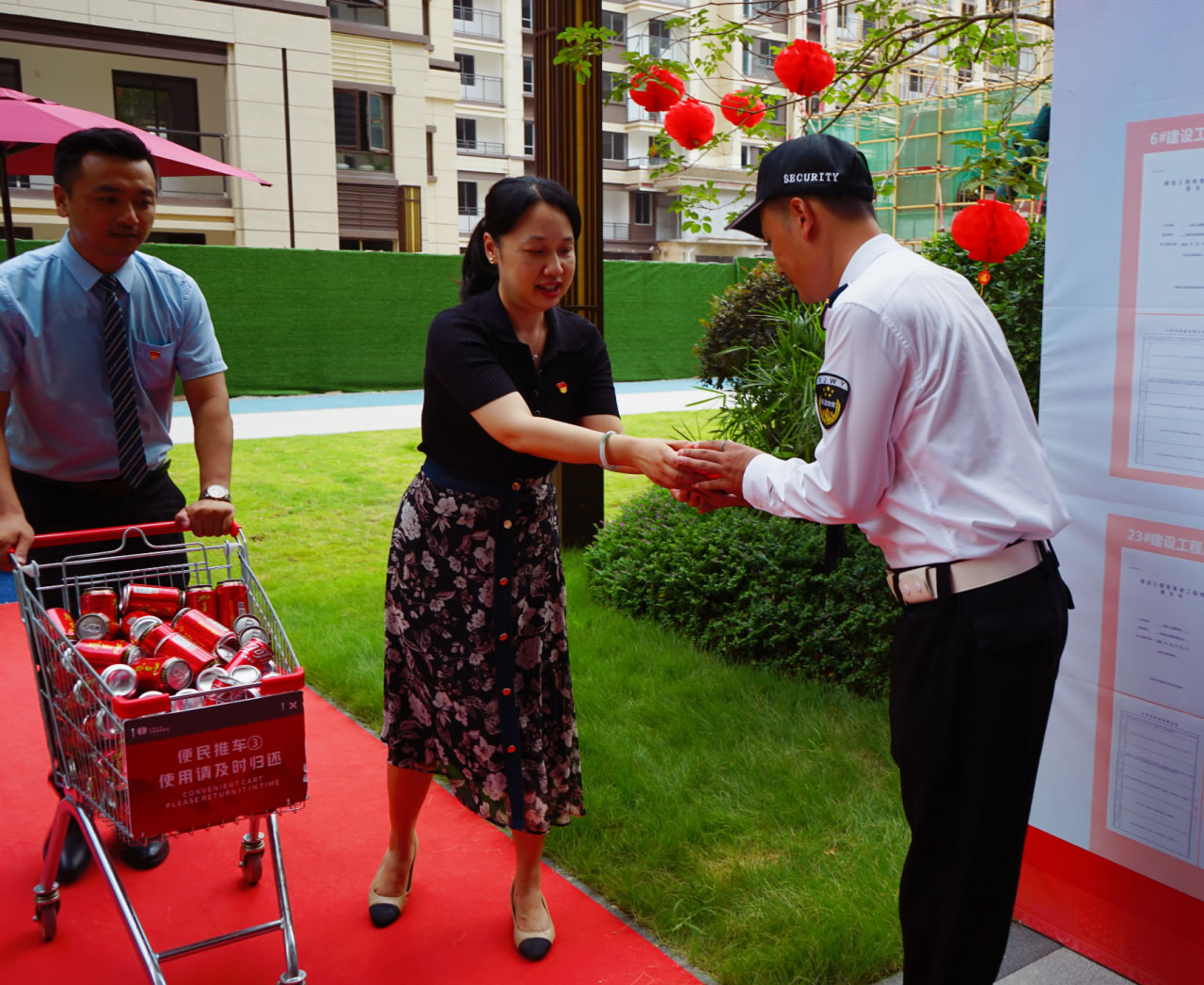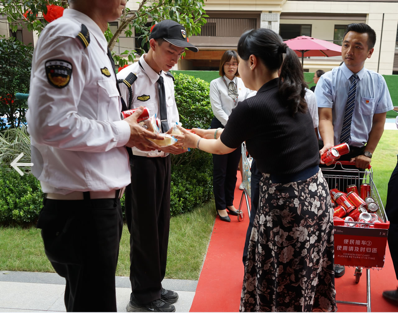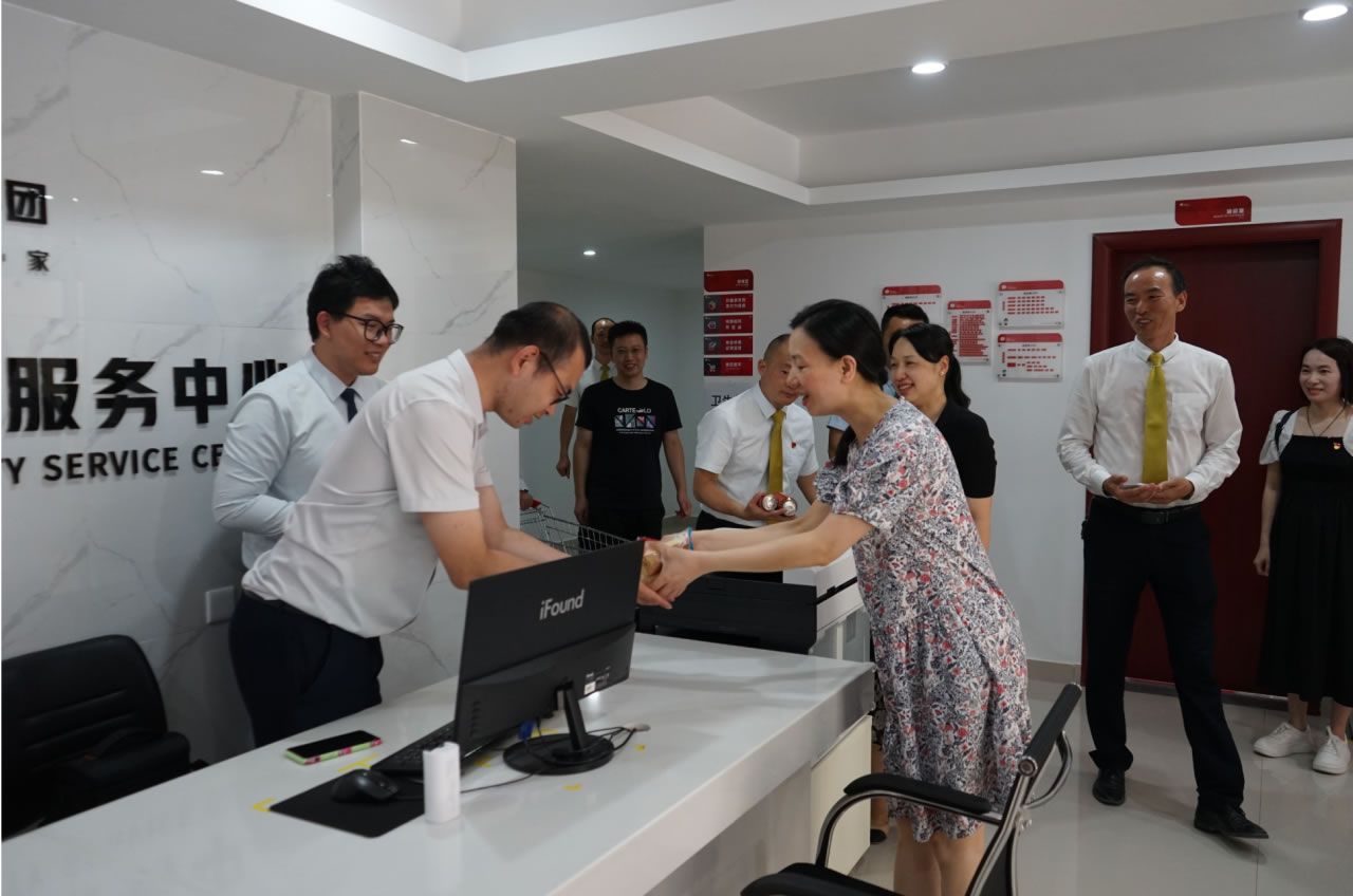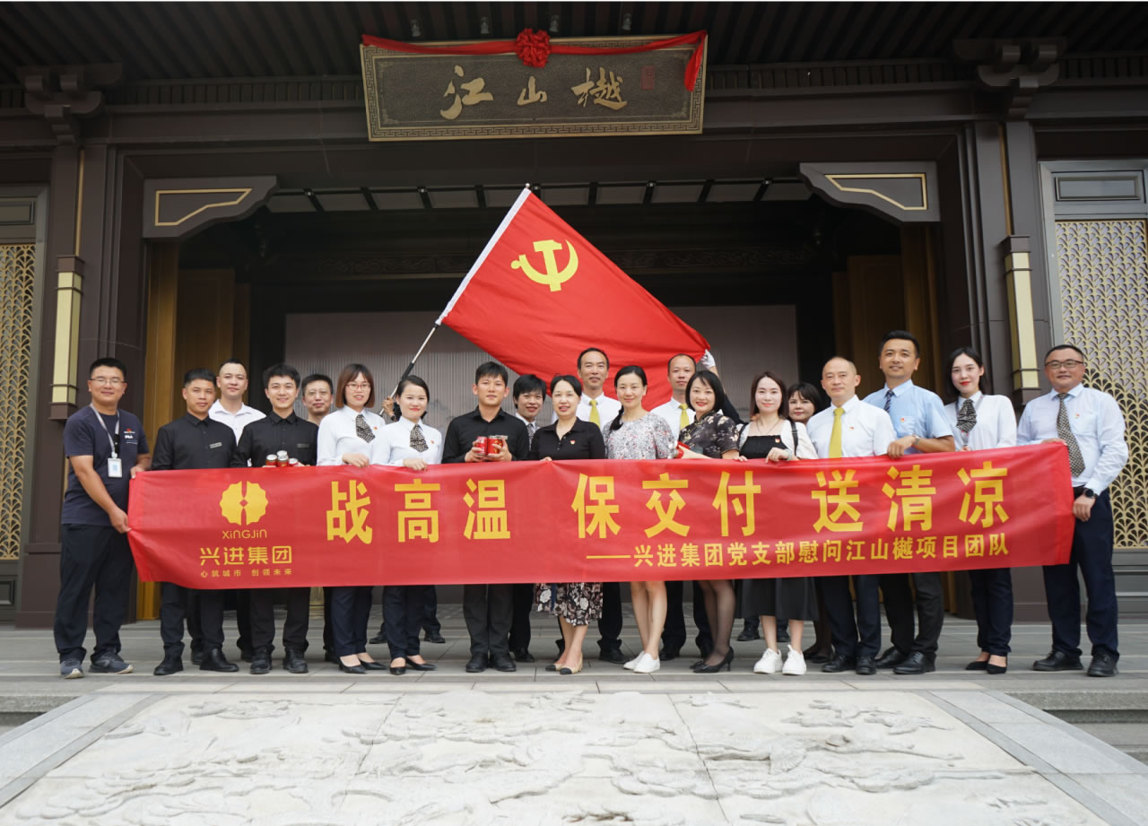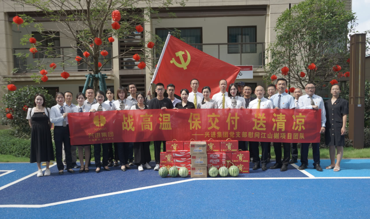 興進(jìn)集團(tuán)黨支部書記羅捷、集團(tuán)副總裁王敏、興進(jìn)物業(yè)服務(wù)集團(tuán)總經(jīng)理王永忠、集團(tuán)黨支部宣傳委員陳健帶領(lǐng)黨員代表一行,為奮戰(zhàn)在交付一線的項(xiàng)目、物業(yè)、營(yíng)銷員工以及集團(tuán)交房支援人員送去解暑清涼慰問品,讓堅(jiān)守在崗位的一線員工們感受到絲絲清涼和濃濃關(guān)懷。